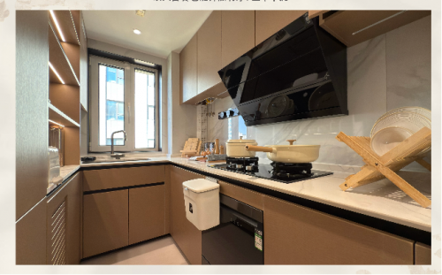 U/L型高效厨房布局,以三面橱柜围合出流畅的“洗—切—炒”黄金动线,实现科学分区与高效协作。